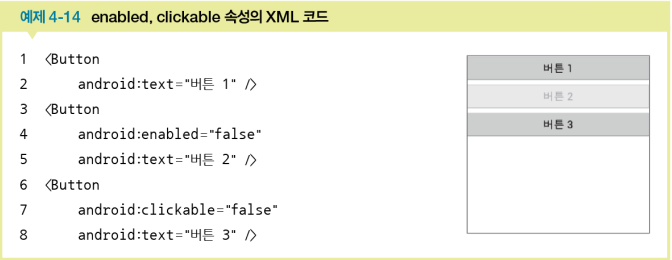 enabled : 위젯의 동작 여부clickable : 클릭이나 터치가 가능하도록 함