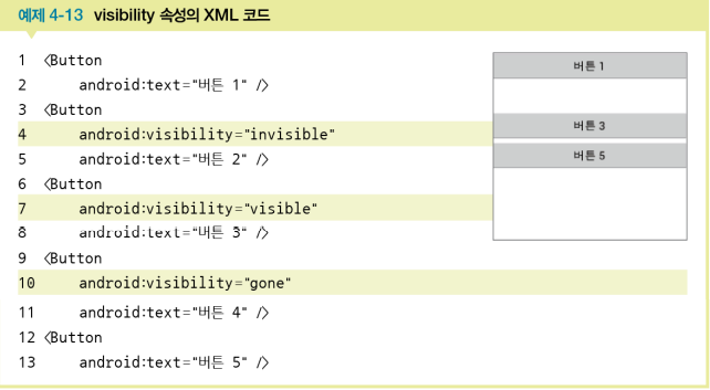 visible은 보이는 상태, invisible과 gone은 안 보이는 상태invisible : 안 보임 + 원래의 자리를 계속 유지함gone : 안 보임 + 자리까지 아예 없어짐
