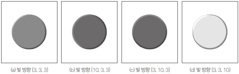 빛의 xyz 방향 1차 배열: 빛이 비추는 x, y, z방향 배열빛의 밝기: 0~1의 값반사 계수: 5~8이 적당블러링 크기: 볼록하게 표현하기 위한 가장자리의 크기