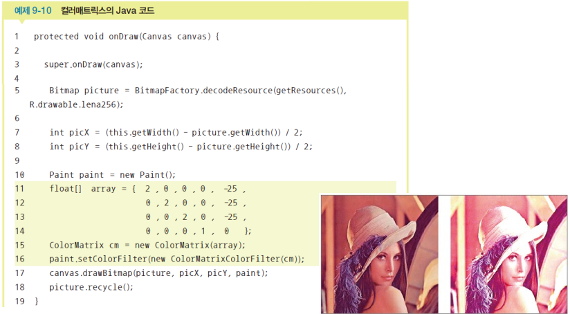 - onDraw( )에 컬러매트릭스 적용
