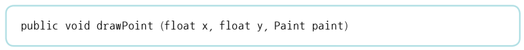 📍 drawPoint(x, y, paint) : (x,y) 좌표에 점을 찍는다. 📍 drawLine(startX, startY, stopX, stopY, paint) : (x,y) 좌표부터 (x,y) 좌표에 선을 그린다. 📍 drawCircle(x, y, radius, paint) : (x,y) 좌표에 반지름(radius)만큼 원을 그린다. 📍 drawRect(left, top, right, bottom) : (left, top)와 (right, bottom)의 대각선을 기초로 사각형을 그린다. 📍 drawText(text, x, y, paint) : (x,y) 좌표에 문자를 출력한다. 📍 Paint.setColor(int color) : 그리기 색상 📍 drawARGB(a, r, g, b) : 기존 색상에 alpha가 추가된 것. (투명 : 0xff / 불투명 : 0x00) 📍 drawRGB(r, g, b) : 0~255까지 각 색상의 코드를 적으면 됨. 📍 drawColor(int color) : RED, BLUE 등 원하는 색상을 적으면 된다. 📍 drawPaint(paint) : 설정 값을 적용, 단순한 채우기 📍 drawRoundRect(RectF r, rx, ry, paint) - rx & ry : 모서리의 둥근 정도. 가상의 타원으로 두 값이 클수록 모서리가 둥글다. 📍 drawOval(RectF r, paint) : Oval은 달걀모양, 지정한 사각형 영역에 내접한 원을 그린다. 📍 drawArc(RectF r, startAngle, sweepAngle, boolean useCenter, paint) - startAngle : 3시방향이 0도, 시계방향으로 증가 - sweepAngle : 그리는 각도 크기 - useCenter : (T) 부채꼴, (F) 호 📍 drawLines(float[] pts, paint) : 배열에 저장된 선을 순서대로 그린다. 연결하고 싶으면 시작과 끝 점을 일치시킨다. 📍 drawPoints(float[] pts, paint) : 배열상의 좌표를 꺼내 여러 개의 점을 찍는다.