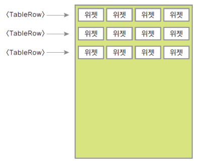 <TableRow/>의 개수<TableRow/> 안에 포함된 위젯의 수