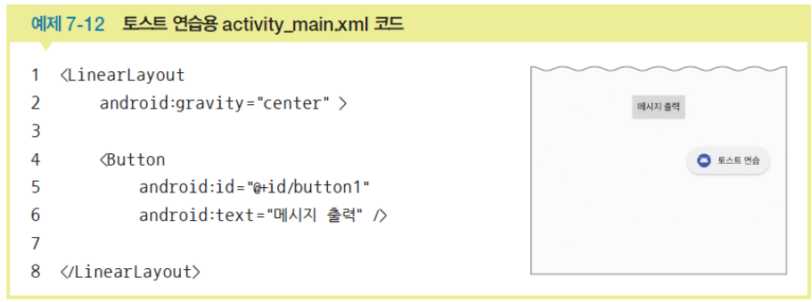 현재 액티비티에 '토스트 연습'을 출력하고, 이 메세지를 짧은 시간동안 보여준다.