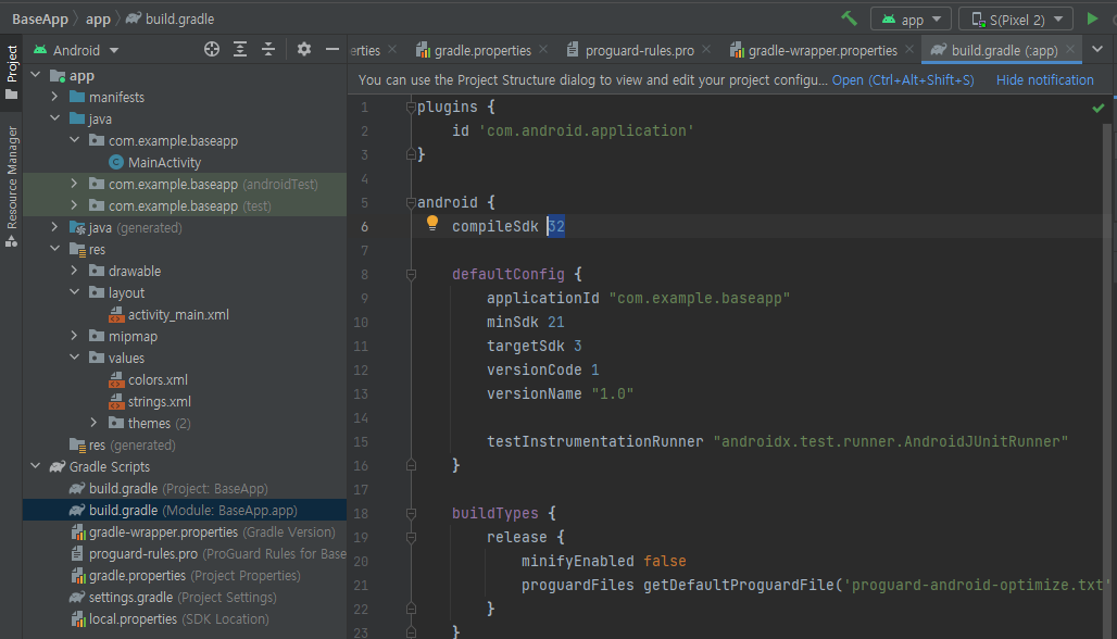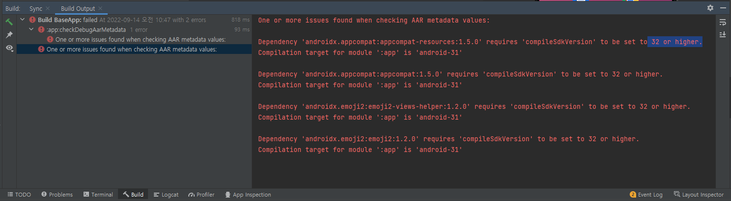 Open SDK Manager, install Android 12 (API 31) or above, then change compileSdkVersion to 31 (or above) and change targetSdkVersion to 31 (or above).