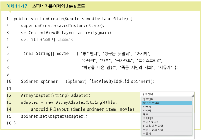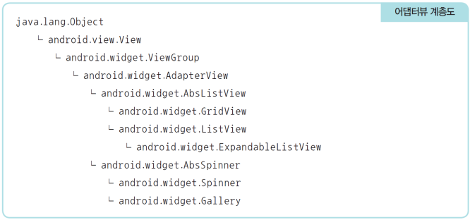 ArrayAdapter<T> 클래스를 함께 사용한다.