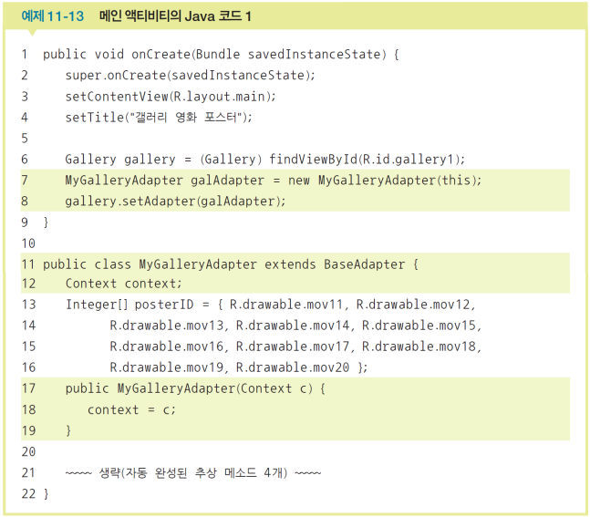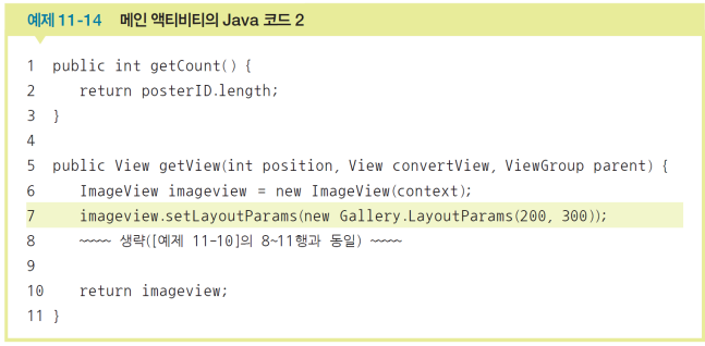 Gallery.LayoutParams(200,300)은 갤러리뷰에 나오는 이미지 크기를 200x300으로 나열해서 보여주겠다는 뜻이다.