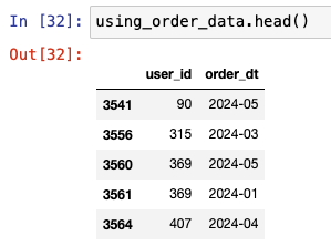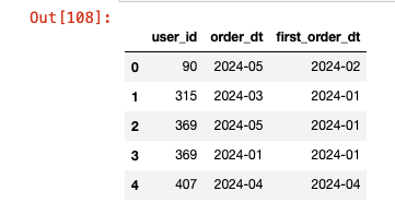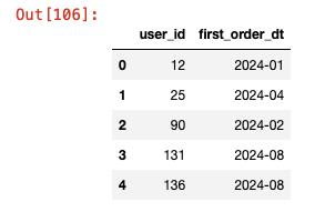 first_order_data = using_order_data.groupby('user_id')[['order_dt']].min().reset_index()