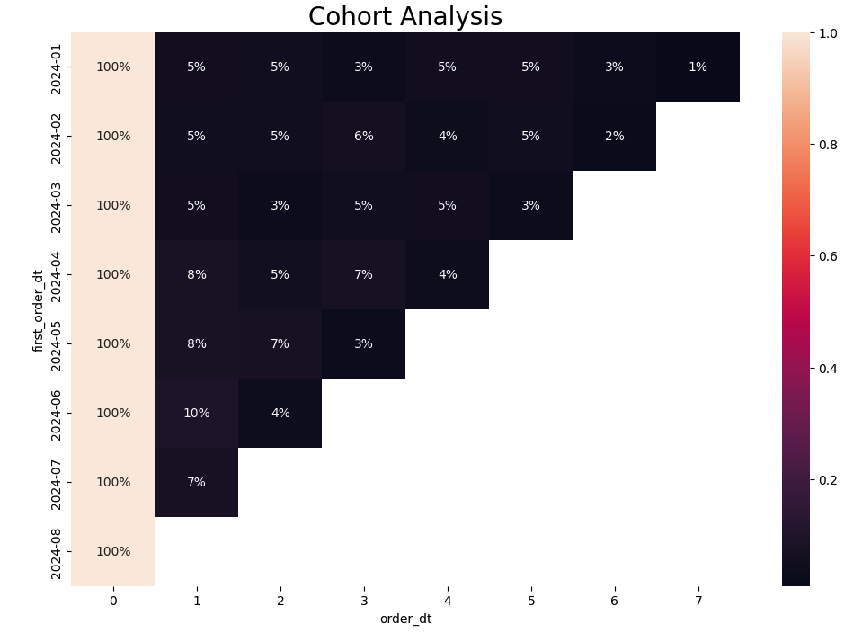 - 코호트 분석을 통해 시간이 지남에 따라 사용자 행동을 추적