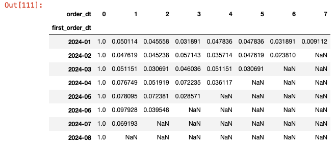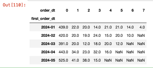 cohorts = cohorts.set_index(["first_order_dt", "order_dt"])