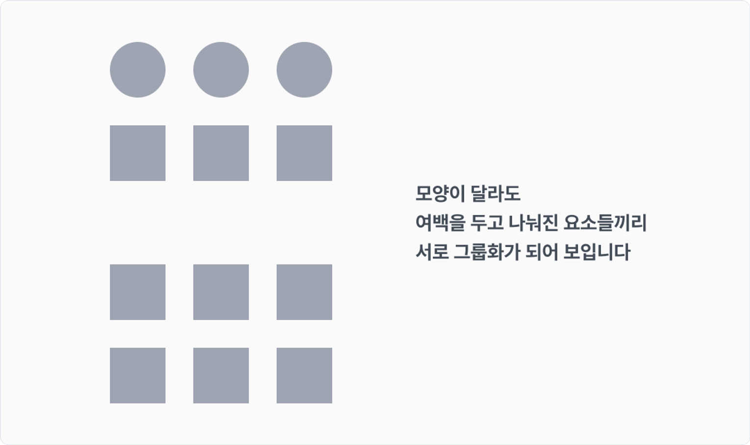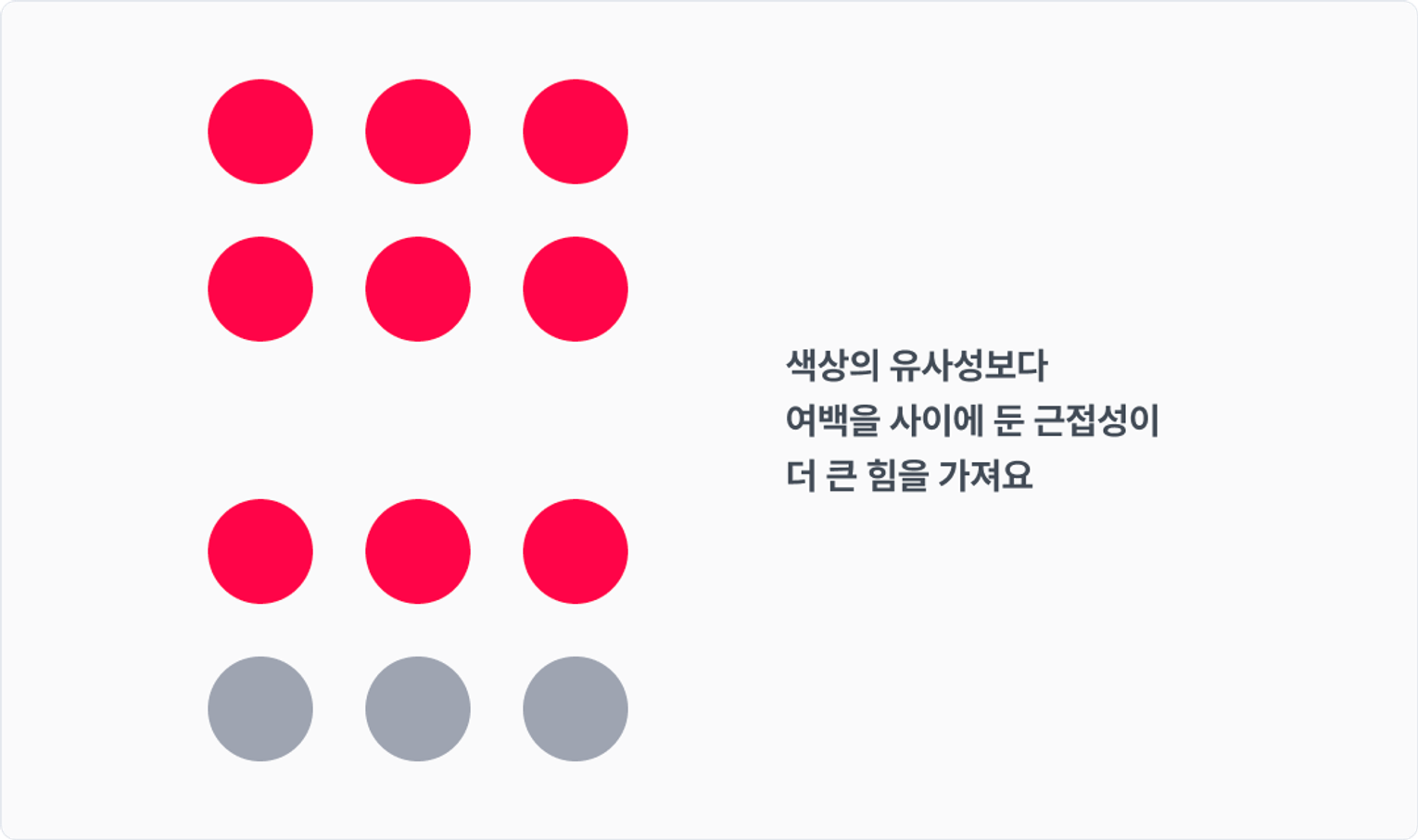 색상을 사용한 유사 관계보다 여백을 사용한 근접 관계가 더 강하다.