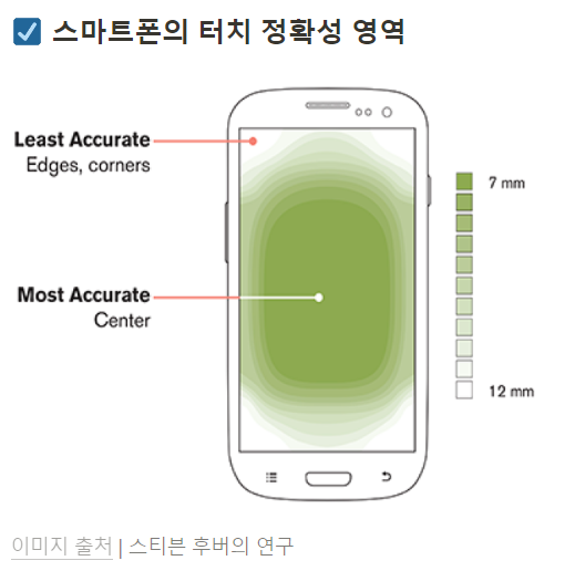 터치해야하는 대상은 마우스나 손가락이 쉽게 닿을 수 있는 곳에 배치