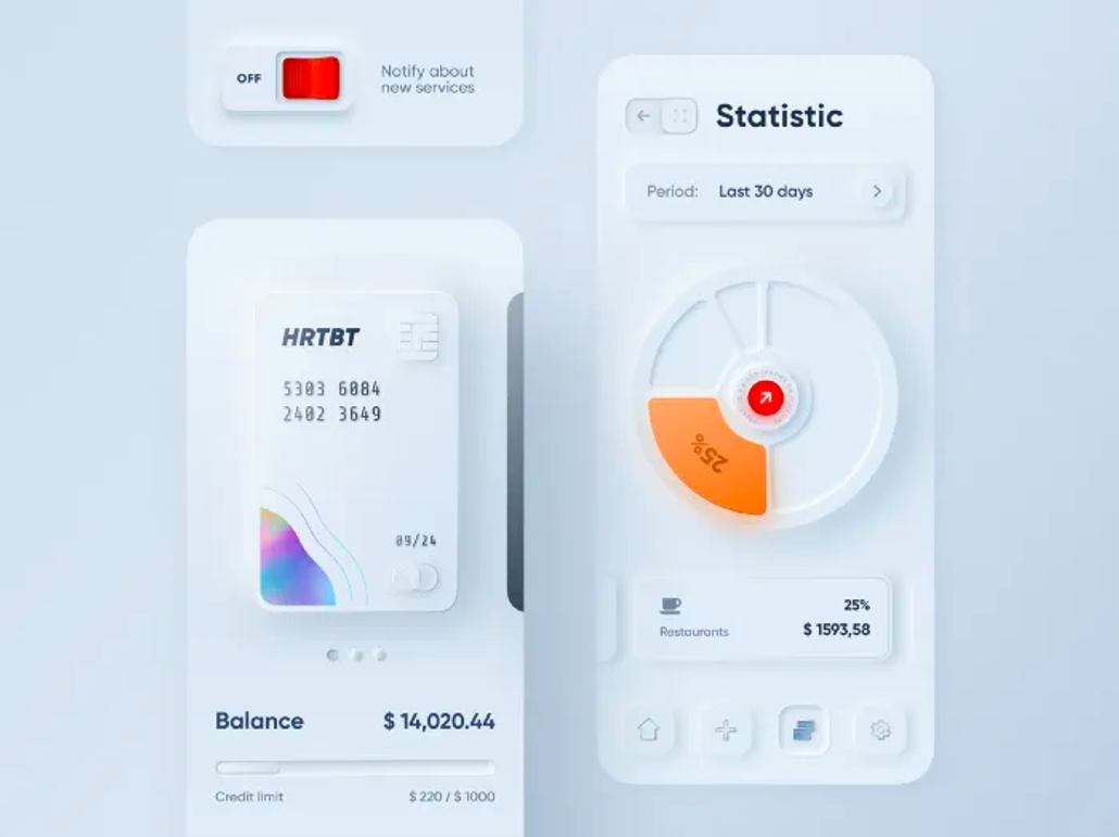 2020년부터 스큐어모피즘과 플랫디자인의 장점을 결합한 디자인 트렌드로 떠오르고 있는 양식