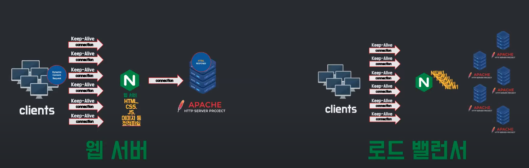 기존 아파치 서버의 구조적 한계로 인한 동시접속 문제를 해결하기 위해 나타난 웹 서버이다.