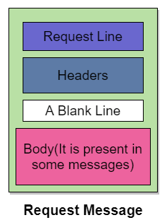 클라이언트가 서버에 보내는 요청 메시지(Request Message)의 구조는 다음과 같이 요청문, 헤더, 바디로 구성된다.