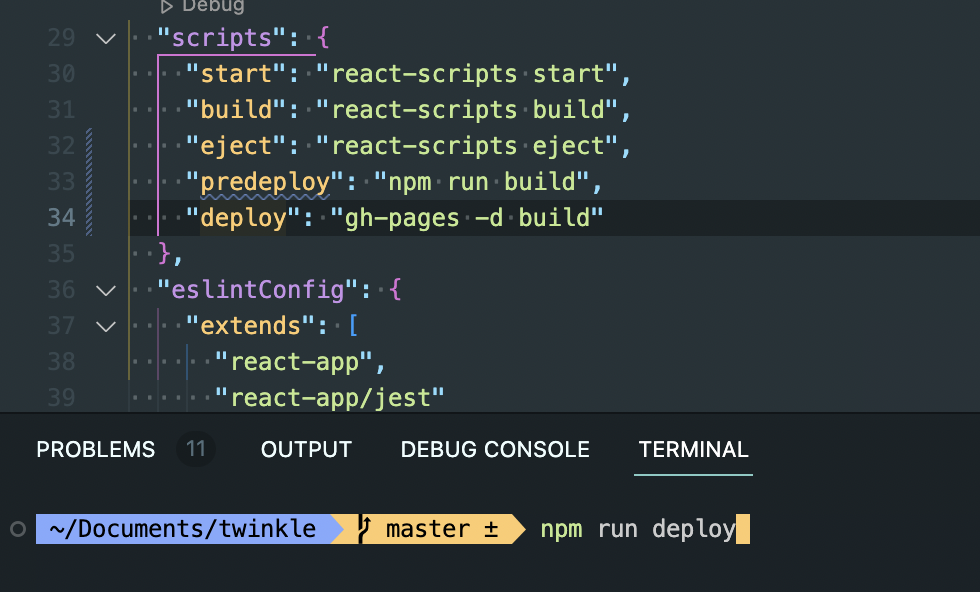 "deploy": "gh-pages -d build" //๋๋ ํ ๋ฆฌ๊ฐ build์ธ gh-pages๋ฅผ deployํด๋ผ