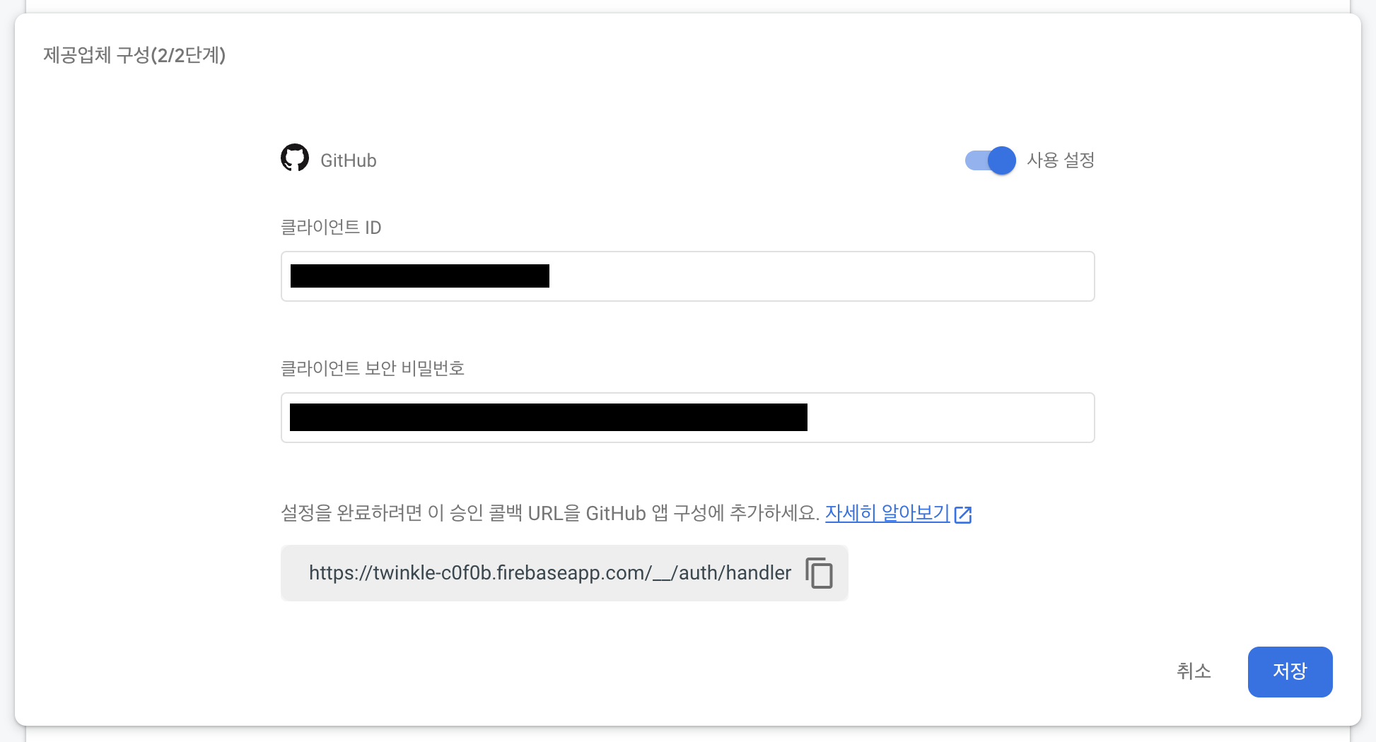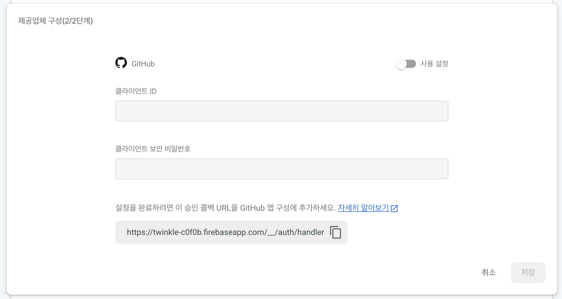 ์น์ธ ์ฝ๋ฐฑ URL์ GitHub ์ฑ ๊ตฌ์ฑ์ ์ถ๊ฐํด์ผ ํ๋ค.