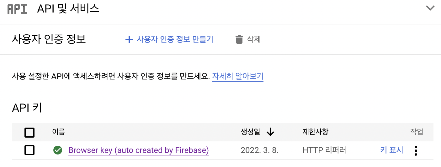 https://console.developers.google.com/apis/credentials์์ API Key ๋ณด์์ ์์ ํด ์ฃผ์.