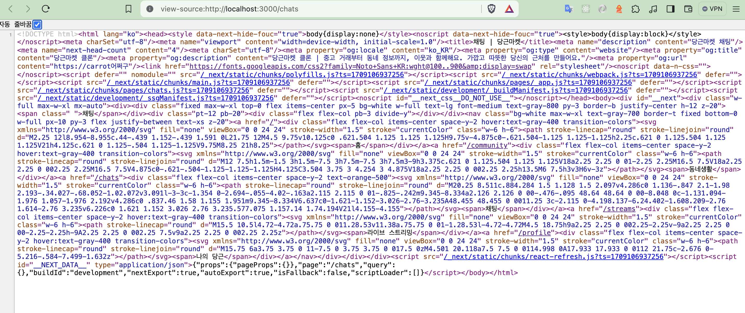 사이트 렌더링 시 이미 서버에서 데이터를 페치했기 때문에 데이터도 다 들어 있다.
