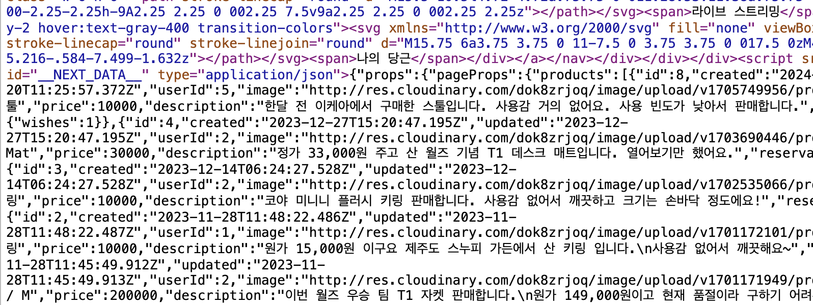 - 또한 data를 get할 때 getServerSideProps() 함수 안에서 프리즈마 클라이언트를 요청하여 사용하면 되기 때문에 api 핸들러를 따로 만들지 않아도 된다. (POST 요청시 핸들러는 따로 만들어야 함)