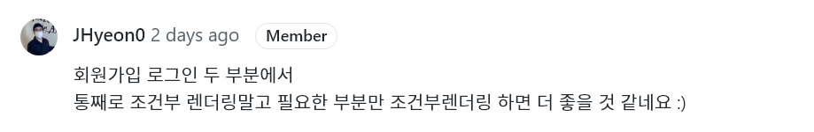 음?? 필요한 부분만 조건부렌더링 한다고 ?? 이미 그렇게 한 거 아닌가 ??