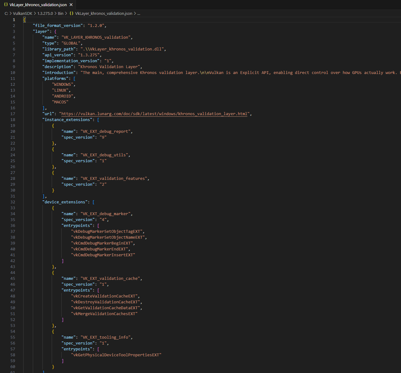 파일의 instance_extensions를 보면 해당 layer가 필요로 하는 extension이 나온다.