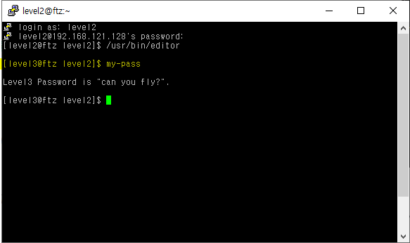 level3 권한 획득 후 비밀번호 알아내기 성공!