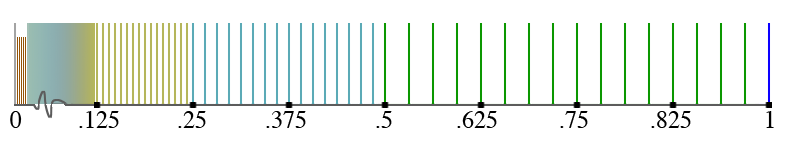 어느 프로그래밍 언어에서든지 실수는 표현하거나 저장할 수 있는 수의 범위가 한정되어 있습니다. 위의 사진은 실수의 밀도(floating point density)입니다. 정확한 영어 표현을 찾지 못했지만, 통상적으로 density라는 표현의 사용합니다. 그 뜻에서부터 한정된 실수들이 어떻게 밀집되어 있는지 나타내죠. 왼쪽으로 갈수록 촘촘해지고, 오른쪽으로 갈수록 널널해집니다.