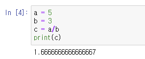 다음과 같이 Python에서 나눗셈은 식의 계산 결과를 실수형(float types)으로 바꾸어 돌려줍니다. (type( ) 함수는 data types를 return해주는 함수입니다.)