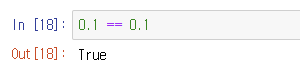 " == " 기호는 나중에 boolean data types에서 보실 수 있는데, "두 대상이 논리적으로 같은가"를 묻습니다. 0.1과 0.1은 당연히 같으니 "참", "진실"이라는 뜻에서 (==이) True를 return했고, jupyter notebook이 그 return값을 보여주네요.