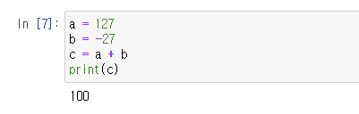 print( )함수로 c를 출력해보면 100이 나오는 것을 확인할 수 있습니다. print( )는 괄호 안의 내용을 모니터에 출력해주는 함수인데, 변수가 들어간 경우에는 변수에 저장된 값을 출력해줍니다.