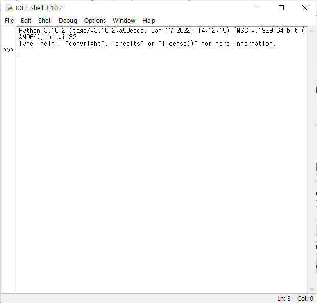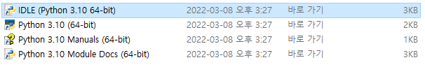 직접 실행한다는 말은 IDLE가 설치된 경로에 직접 가서 실행하거나 IDLE를 가리키고 있는 바로가기를 실행한다는 말이다.