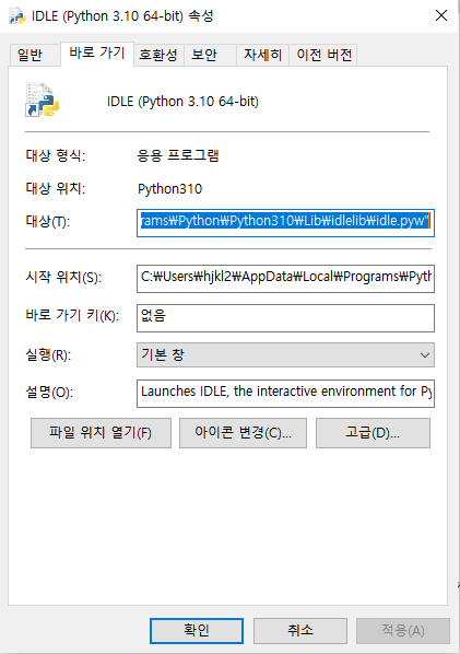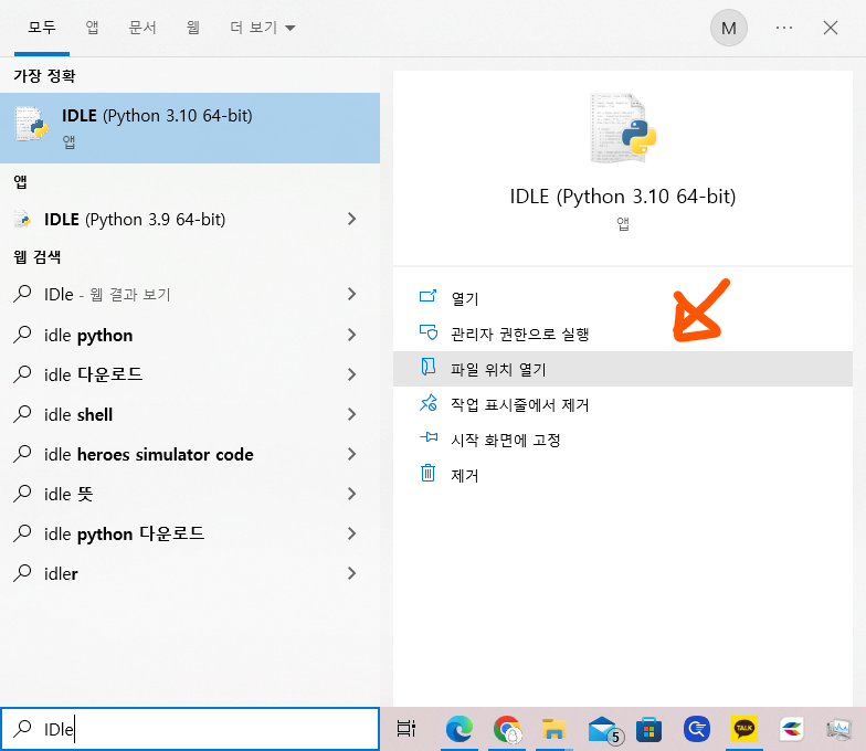 시작에서 IDLE를 검색한 뒤에 파일 위치를 열어본다.
