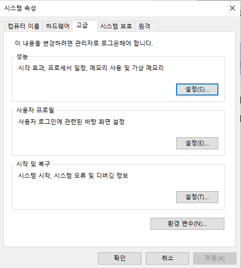 환경 변수를 추가하는 방법은 위와 동일하다. 다만 새로 만들어야 할 내용은 다음과 같다.