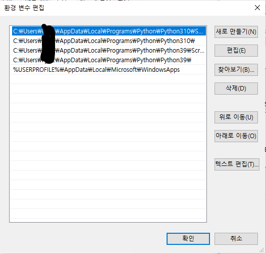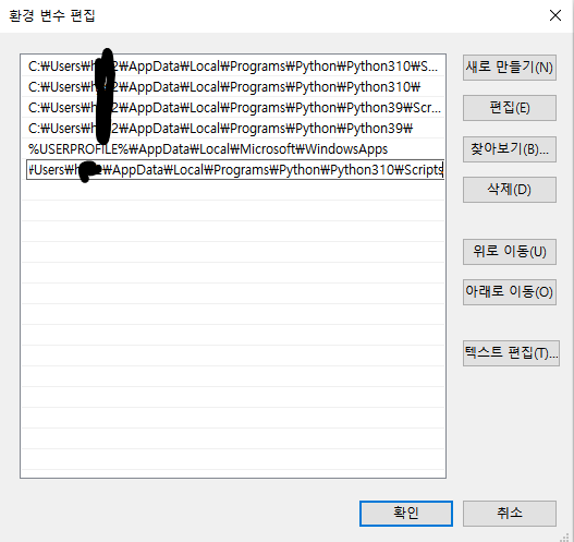 잘 보면 pip을 환경 변수에 등록할 때에서 Scripts\만 뺐다는 걸 알 수 있다.