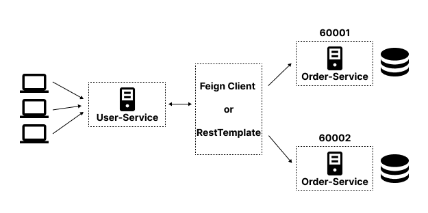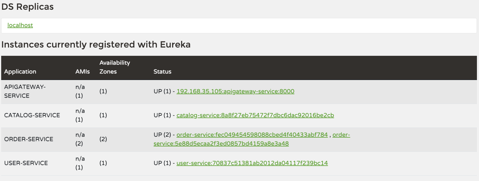 Gateway 설정에서 라운드 로빈 방식으로 라우팅이 진행되도록 설정했기 때문에, 각 요청은 서비스 인스턴스를 번갈아가면서 사용할 것이다.