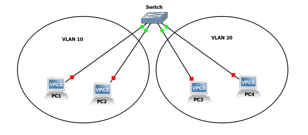 예를들어 PC1과 PC2는 작업용 네트워크, PC3과 PC4는 개인용 네트워크로 구성할 수 있다는 뜻이다.