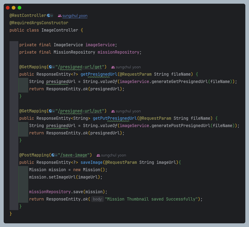 이러한 문제로, 대안점을 찾다가 presignedUrl을 도입하게 되었다.