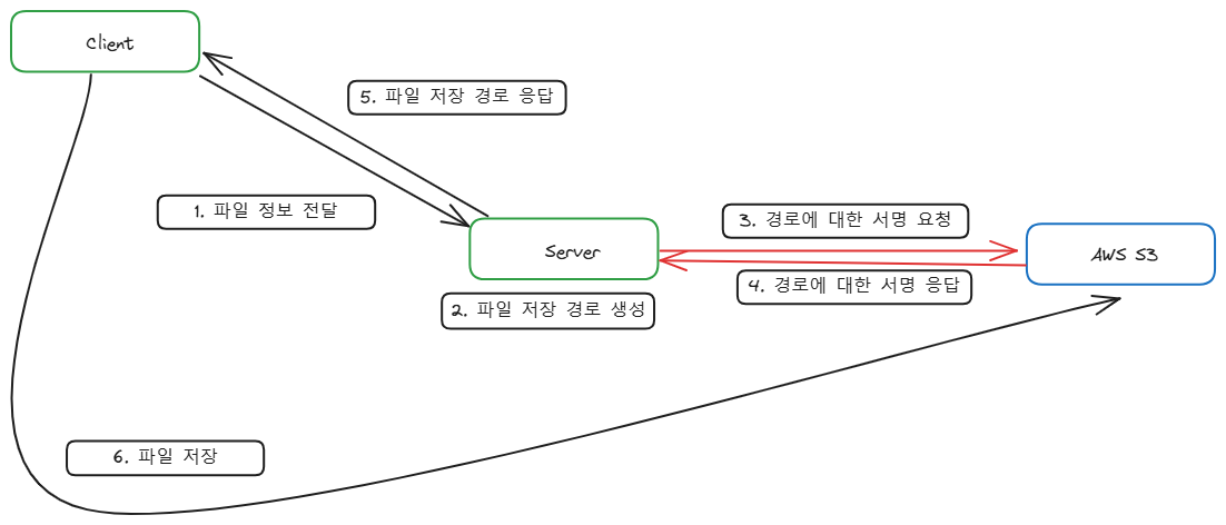 기존에는 클라이언트로부터 API 요청이 들어오면, 다른 리소스를 저장하는 것처럼 당연하게도 서버가 s3에 업로드하고 imageUrl을 저장했다.