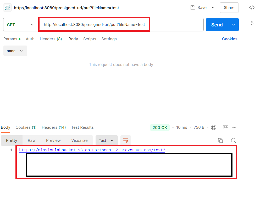 먼저 클라이언트는 업로드하고자 하는 파일명을 requestParam으로 api를 요청한다.