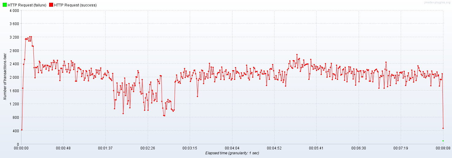 이전에는 ,캐시가 갱신하는 시점에 캐시 미스가 발생해서 TPS가 800까지도 떨어지는 구간이 있었다.