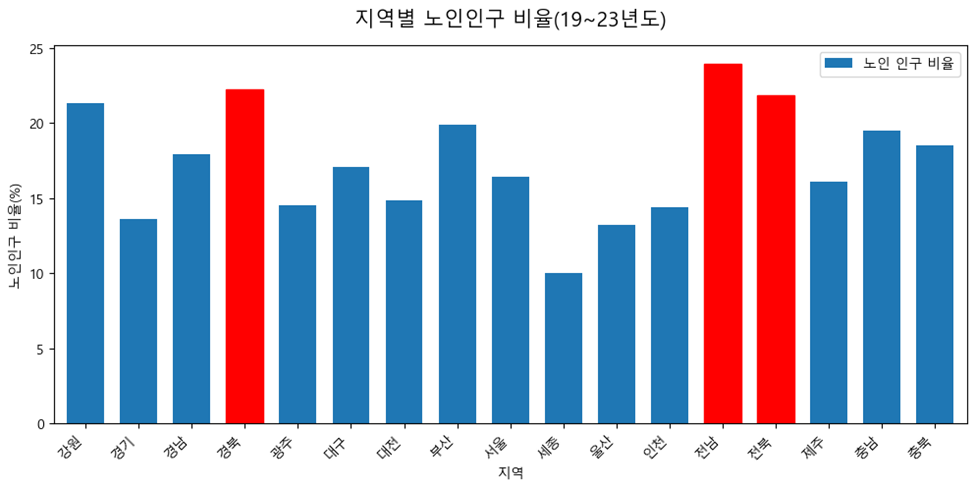 무엇보다 경북, 전남, 전북은 타 시도에 비해 마찬가지로 높은 노인인구 비율을 가지고 있는 지역이었다.