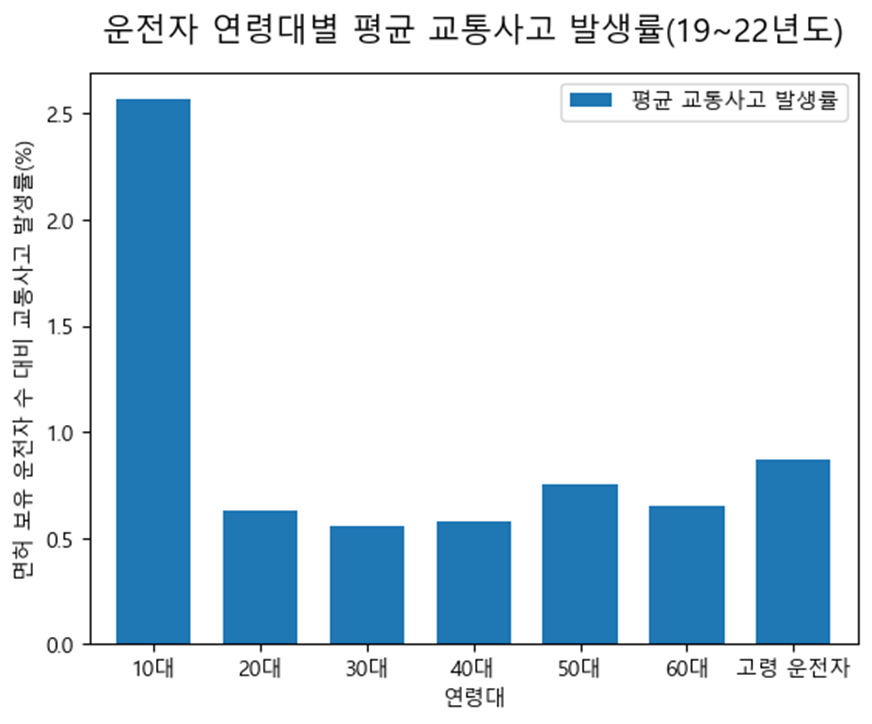 하지만, 운전면허를 보유한 운전자들의 교통사고 발생률을 확인해보면 뭔가 이상하다. 10대 운전자들의 발생비율이 타 연령대에 비해 높기 때문이다. 왜 그럴까?