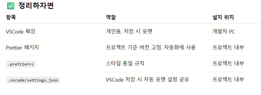 팀원들이 확장프로그램이 설치되어있어도 적용되는 규칙이 다를 수있기 때문에 같은 .pretterrc파일을 프로젝트에 갖고 있어야한다.