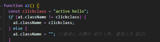 HTML태그에서 클래스 지정, 수정을 했을 경우 위 if문을 실행하게 되면 HTML에서 지정해둔 과거의 클래스가 사라지기 때문에