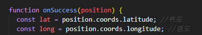 위 코드는 날씨API를 사용하기 위한 코드인데