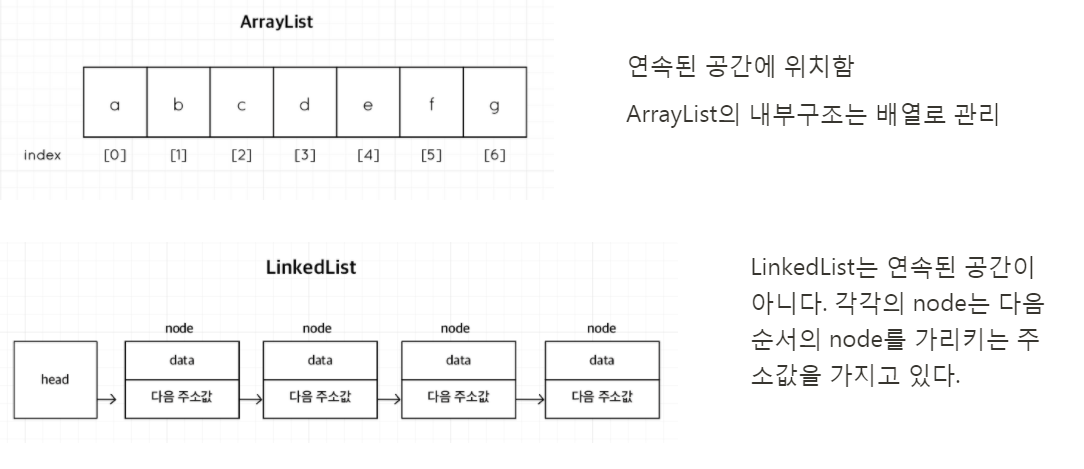 - 저장된 인스턴스의 참조 과정이 배열보다 복잡하여 검색이 느리다.