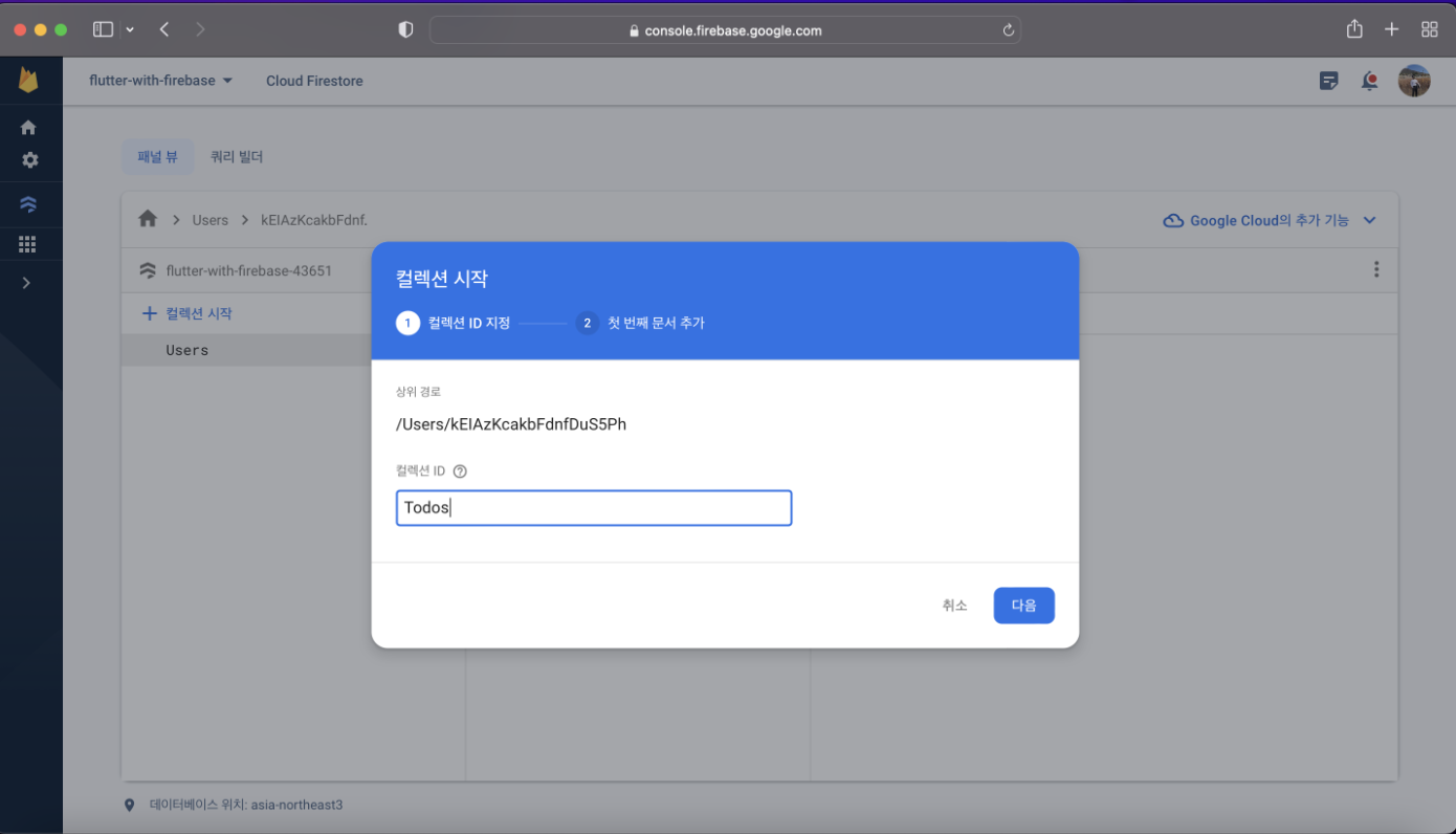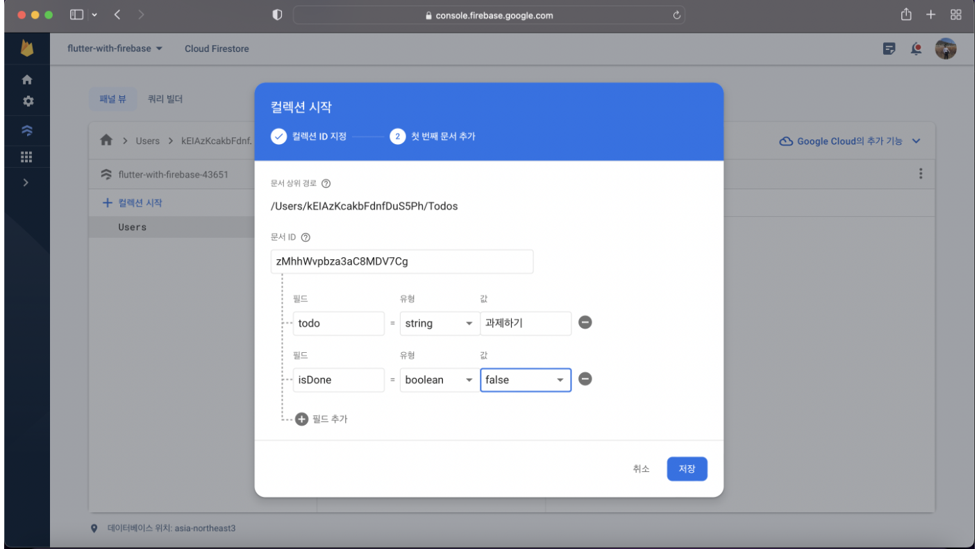 Todo collection 생성 및 document 생성 ... (ex입니다)
