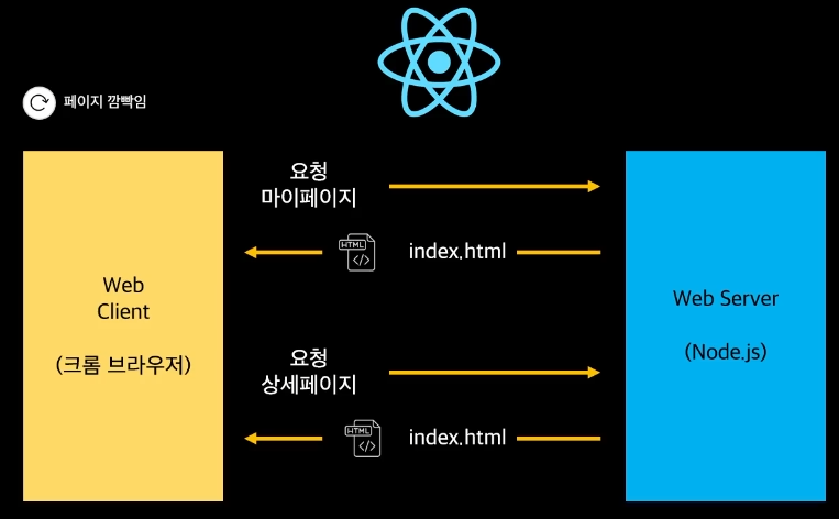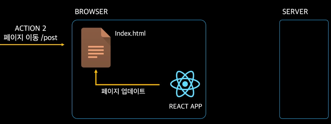 - 페이지 이동 시 서버한테 /post를 요청하는 것이 아니고 React 앱이 페이지를 업데이트시킴