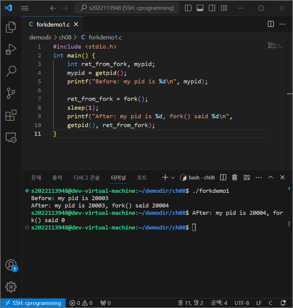 psh2.c를 실행해서 tr명령어를 실행시켰을 때