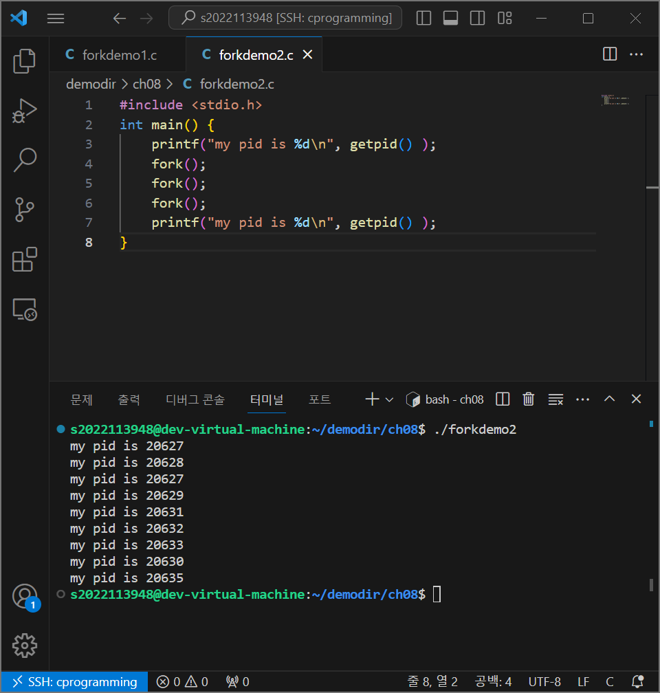 => Ctrl + C라는 SIGINT는 tr뿐만 아니라 psh2.c를 kill한다.